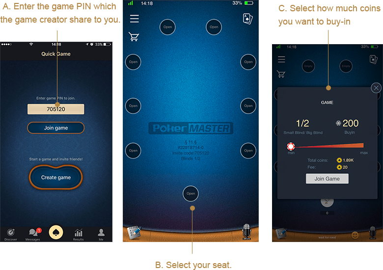 as message to the game creator, wait for the game creator approval for this buy-in.